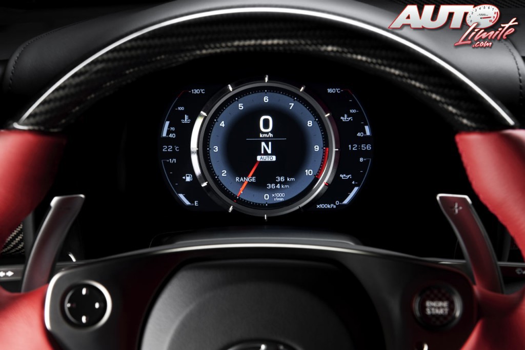 El cuadro de instrumentos cuenta con una pantalla LCD en color en la que visualizamos abundante información. El volante está recrecido a las "10:10" y detrás encontramos unas levas de cambio de generoso tamaño, la derecha para subir marchas y la izquierda para reducir.