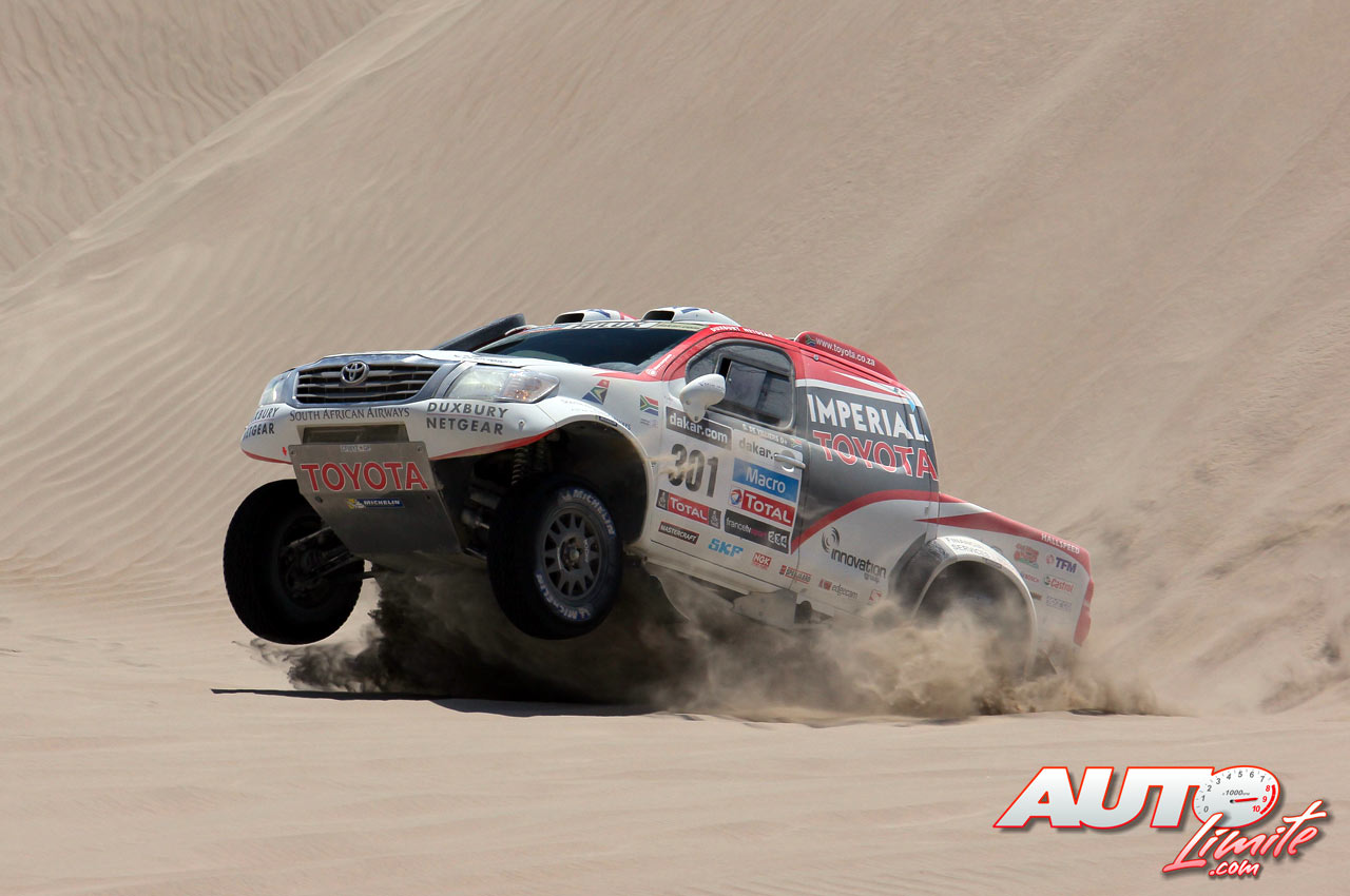 Giniel de Villiers con el Toyota Hilux 4x4, durante una de las etapas del Rally Dakar 2013.