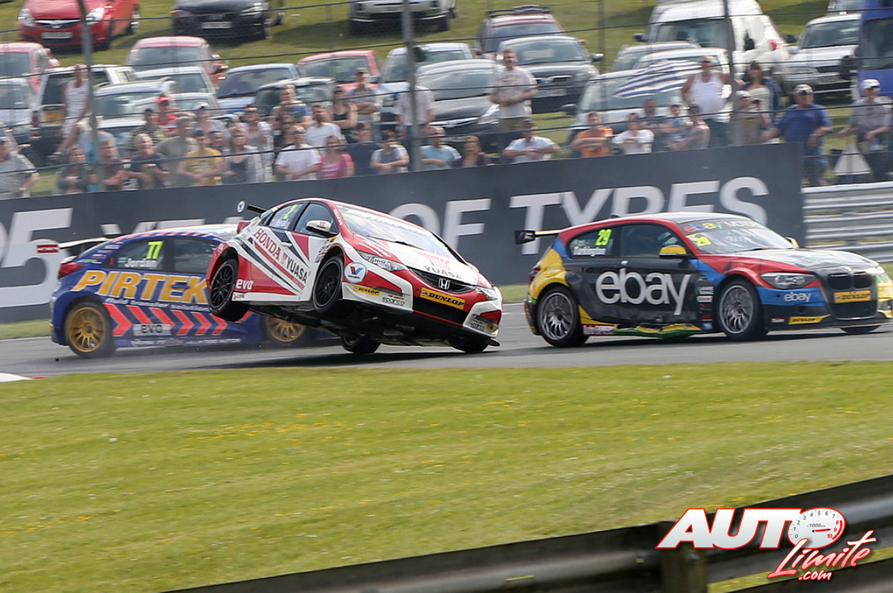 Colin Turkington (BMW 125i M Sport NGTC nº 29), Matt Neal (Honda Civic 2000 NGTC nº 2) y Andrew Jordan (Honda Civic 2000 NGTC nº 77) durante la prueba disputada en el circuito de Oulton Park, puntuable para el Campeonato Británico de Turismos BTCC 2013.