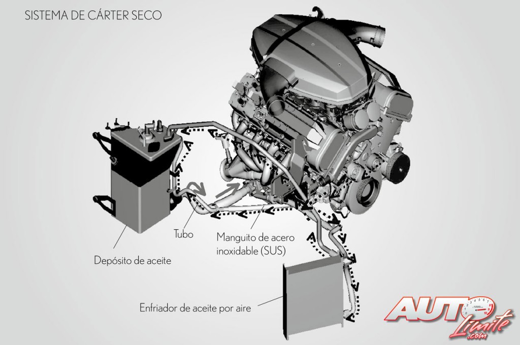 Detalle del circuito de lubricación del motor V10 con cárter seco.