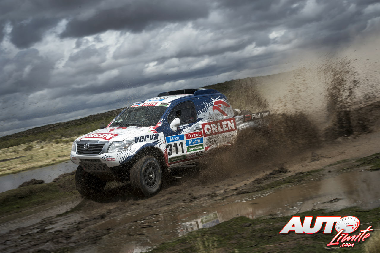 Marek Dabrowski con el Toyota Hilux V8 en la 7ª etapa del Rally Dakar 2015, disputada entre Iquique (Chile) y Uyuni (Bolivia).