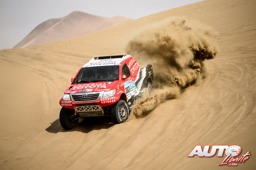 Giniel de Villiers con el Toyota Hilux V8 en la 9ª etapa del Rally Dakar 2015, disputada entre las localidades chilenas de Iquique y Calama.