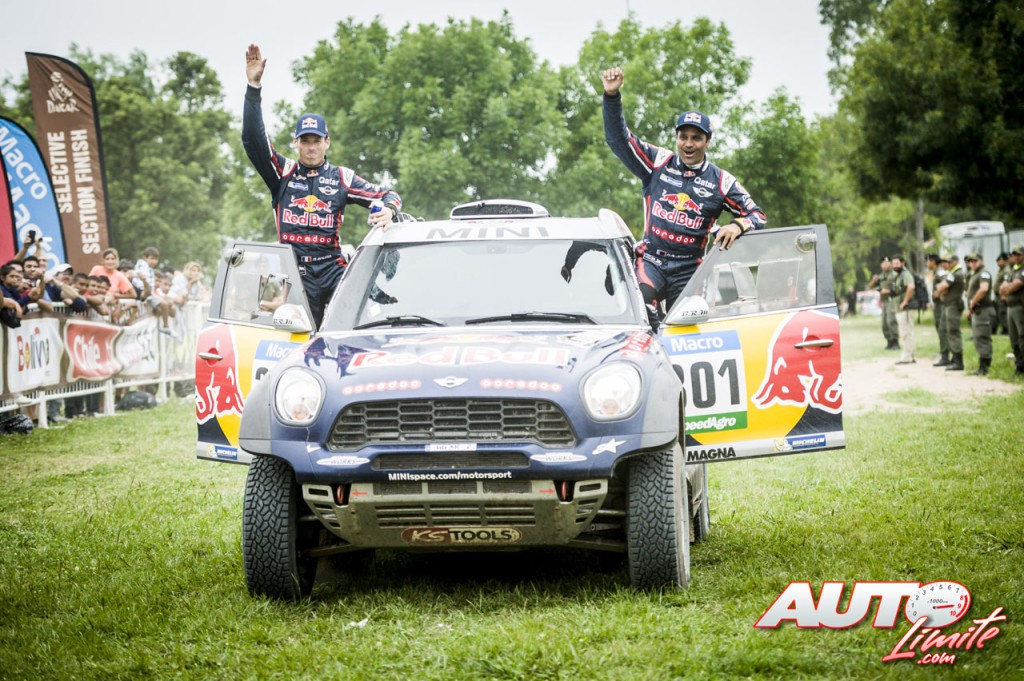 Nasser Al-Attiyah celebra en la llegada a Baradero (Argentina) su victoria en el Rally Dakar 2015.