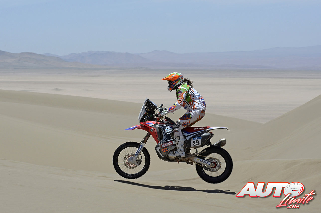 Laia Sanz (Honda) en la 9ª etapa del Rally Dakar 2015, disputada entre las localidades chilenas de Iquique y Calama.