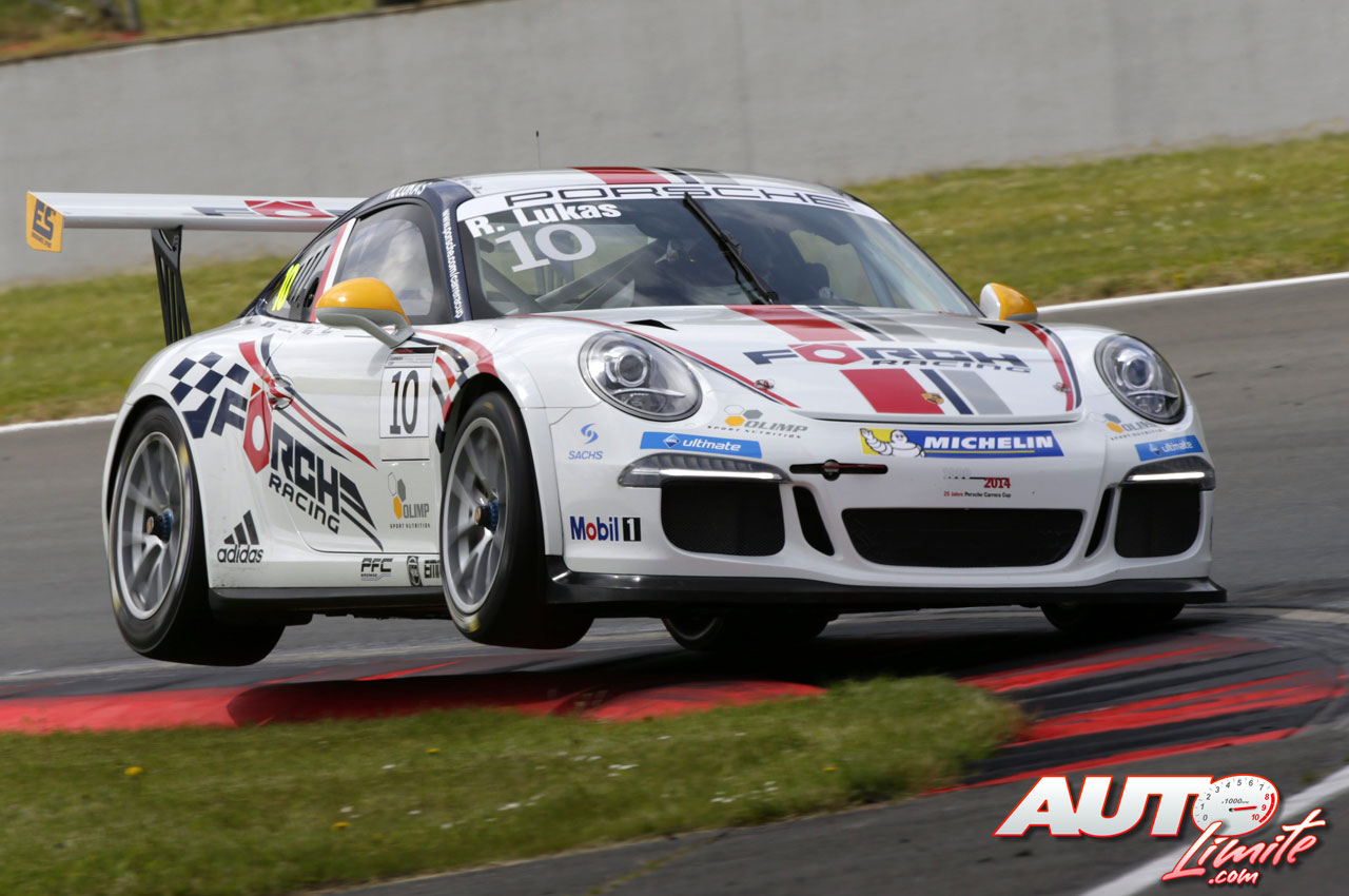 Robert Lukas al volante del Porsche 911 GT3 Cup, durante la carrera disputada en el circuito de Oschersleben (Alemania), en una prueba puntuable para la Porsche Carrera Cup de Alemania 2014.