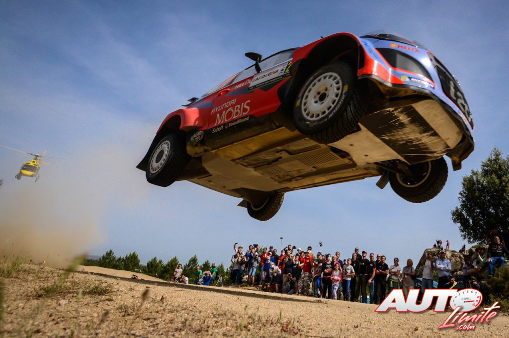 Hayden Paddon al volante del Hyundai i20 WRC en el Rally de Cerdeña-Italia 2015, puntuable para el Campeonato del Mundo de Rallyes WRC.