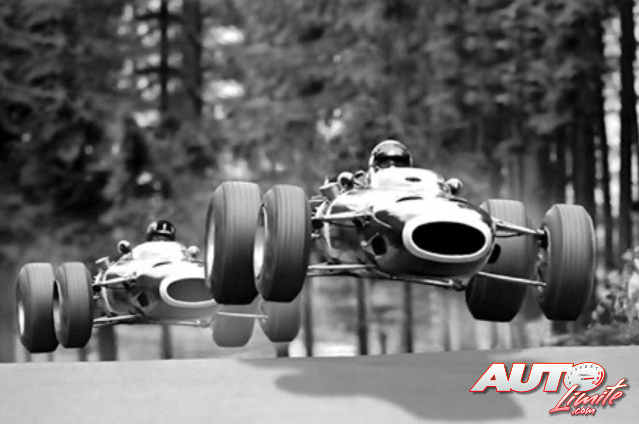 Jackie Stewart y Graham Hill, al volante ambos del BRM P261 V8, durante el Gran Premio de Alemania de 1966, disputado en el circuito de Nürburgring-Nordschleife.