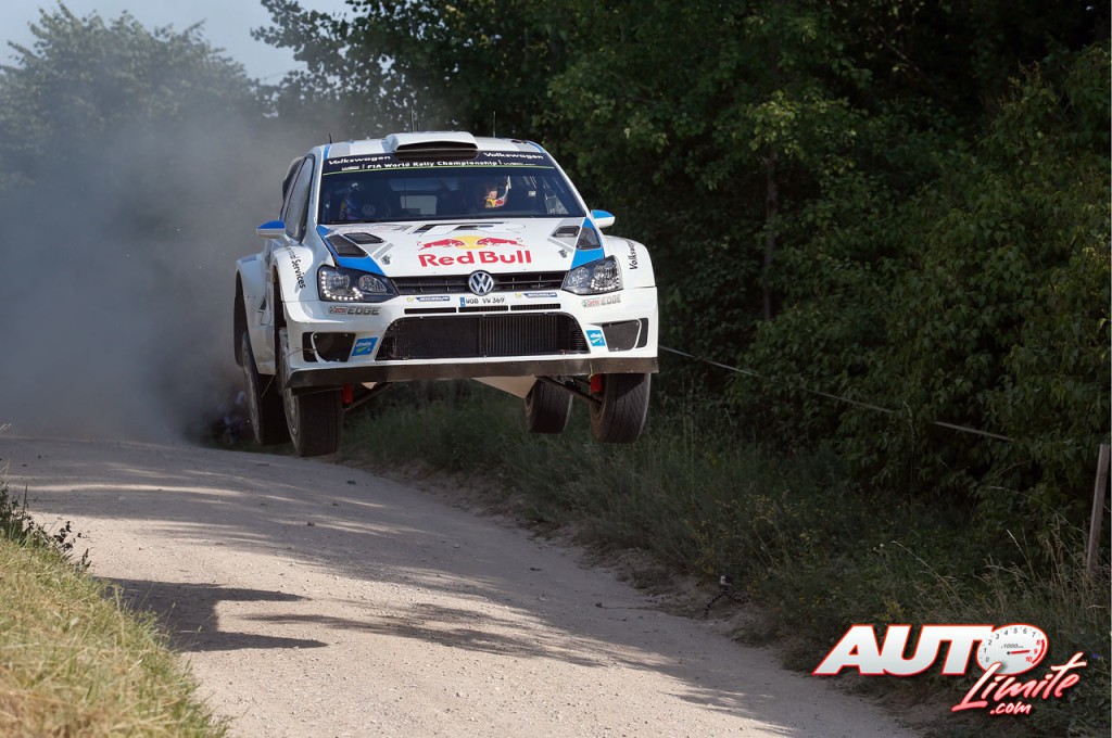 Sébastien Ogier, al volante del Volkswagen Polo R WRC, durante el Rally de Polonia 2014, puntuable para el Campeonato del Mundo de Rallyes "WRC".