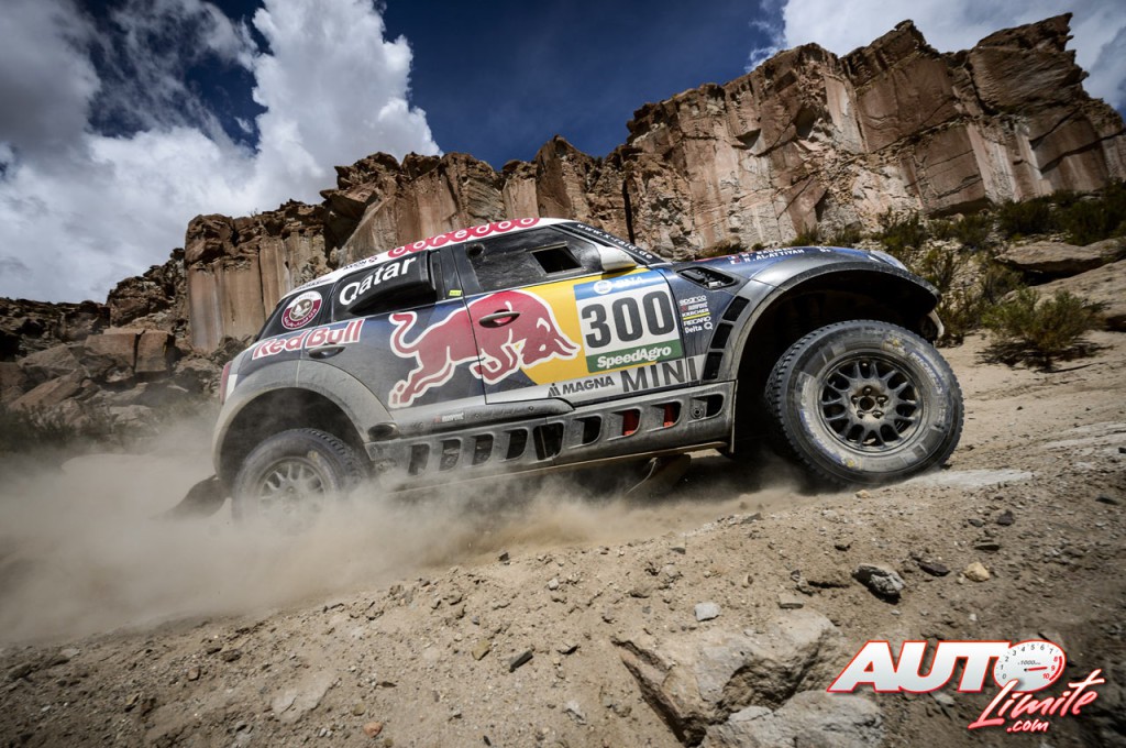 Nasser Al-Attiyah, al volante del Mini ALL4 Racing, durante la etapa 4 del Rally Dakar 2016, disputada en San Salvador de Jujuy.