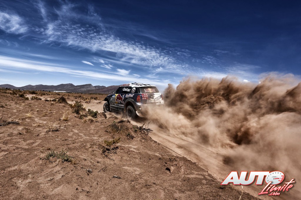Nasser Al-Attiyah, al volante del Mini ALL4 Racing, durante la etapa 6 del Rally Dakar 2016, disputada en Uyuni.