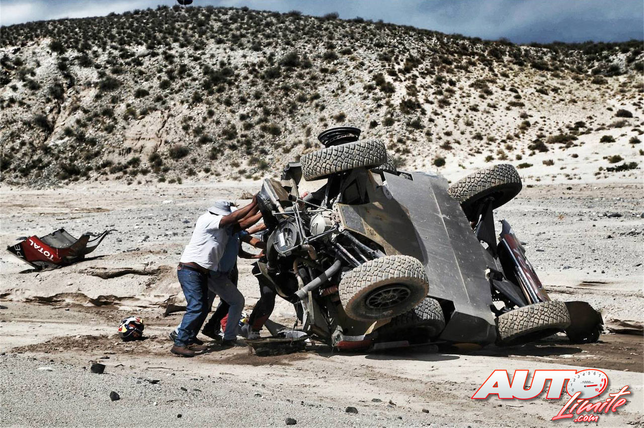 Sébastien Loeb sufría un vuelco con su Peugeot 2008 DKR16 durante la etapa 8 del Rally Dakar 2016, disputada entre Salta y Belén.
