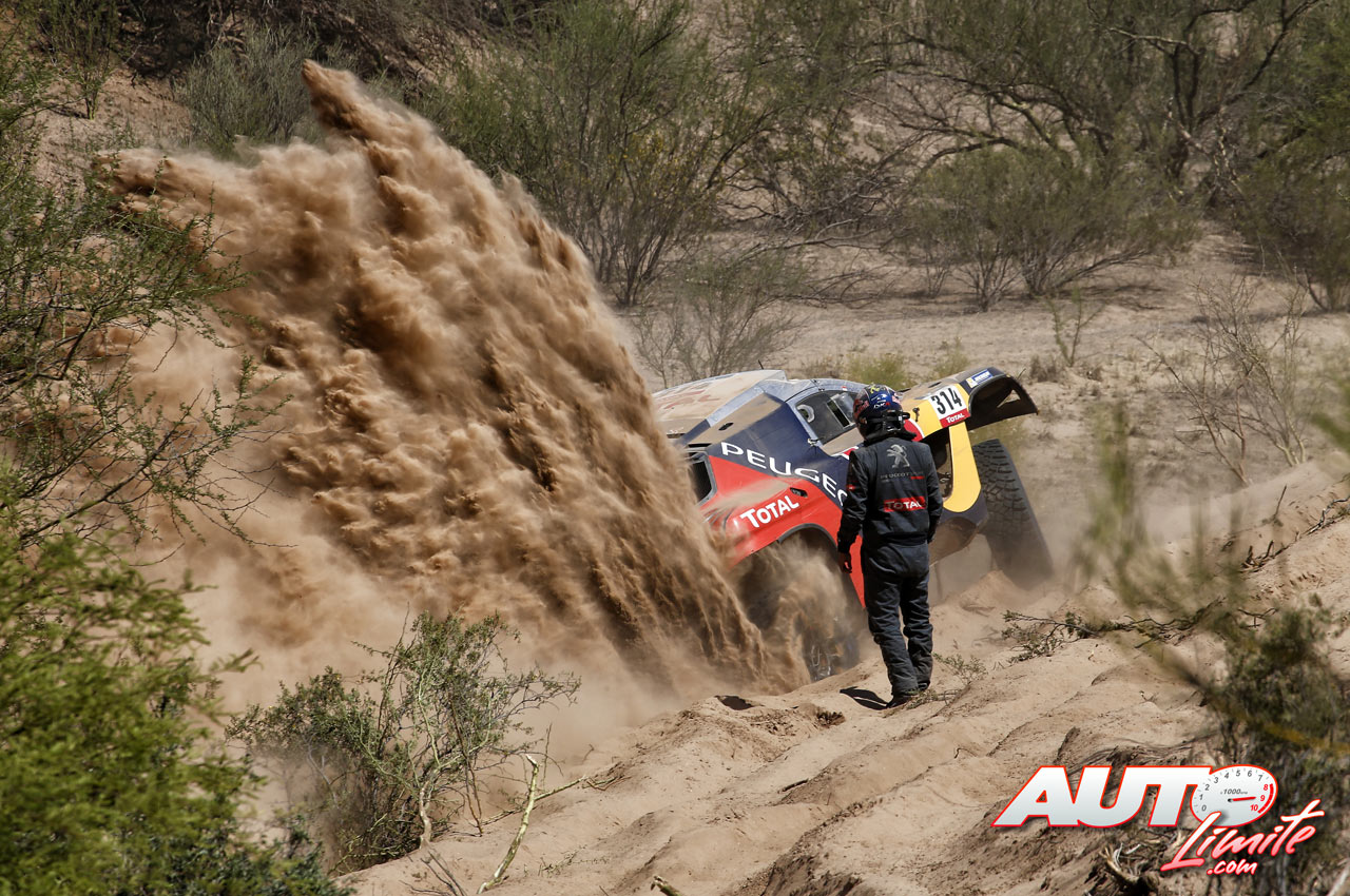 Sébastien Loeb y Daniel Elena (Peugeot 2008 DKR16) quedaron atascados en la arena de la etapa 9 del Rally Dakar 2016, disputada en un bucle realizado entre Belén y Belén.