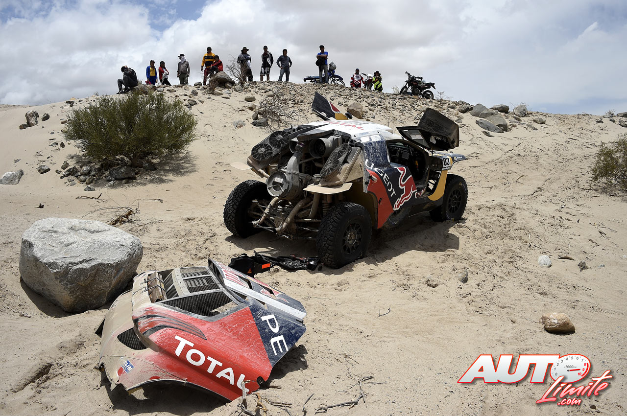 Carlos Sainz y Lucas Cruz tuvieron que abandonar en la etapa 10 del Rally Dakar 2016, disputada entre Belén y La Rioja. La carcasa del cambio de su Peugeot 2008 DKR16 sufrió una avería irreparable que les dejó fuera de competición.