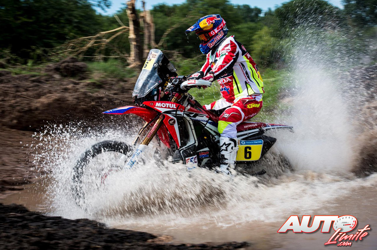 Joan Barreda, a los mandos de su Honda CRF 450 Rally, durante la etapa prólogo del Rally Dakar 2016, disputada en Arrecifes (Argentina)