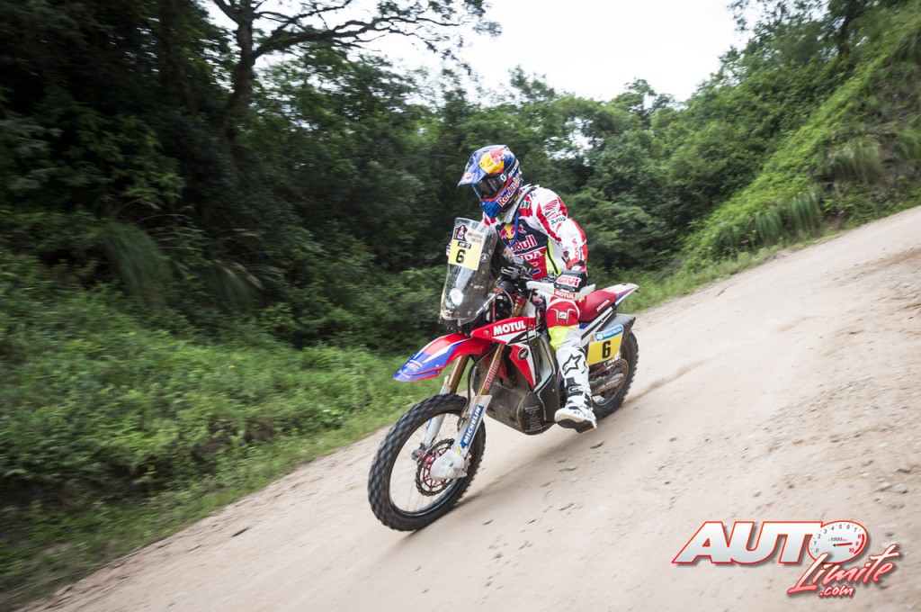 Joan Barreda, a los mandos de su Honda CRF 450 Rally, durante la etapa 3 del Rally Dakar 2016, disputada entre Termas de Río Hondo y San Salvador de Jujuy.