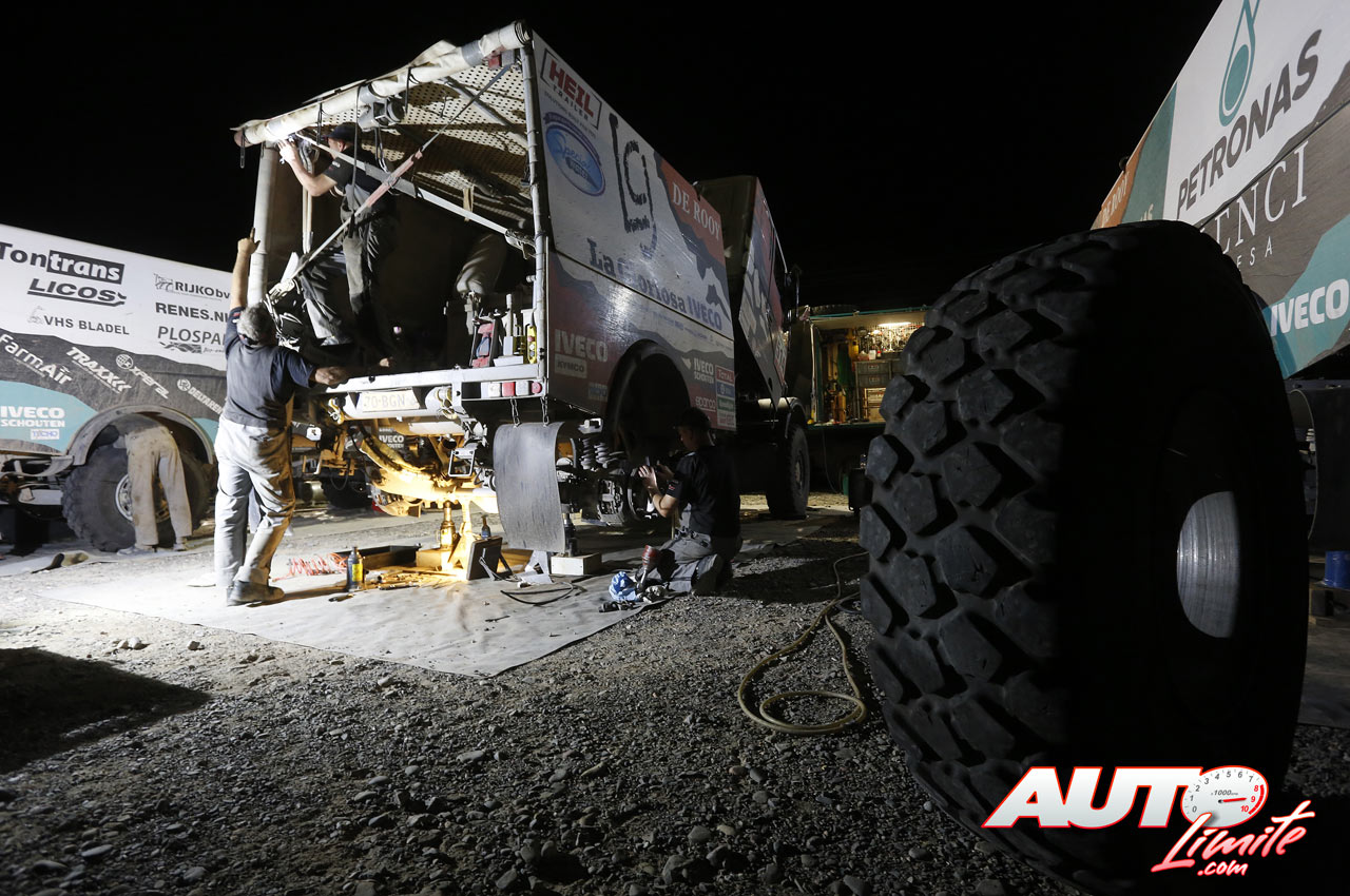 Parque de asistencia del equipo Iveco al finalizar la etapa 12 del Rally Dakar 2016, disputada entre San Juan y Villa Carlos Paz.