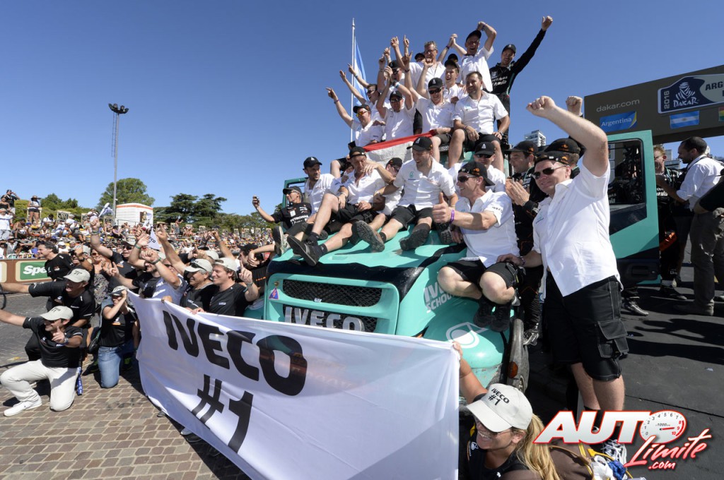 El equipo Iveco celebra la victoria en el Dakar 2016 en el podio celebrado en Rosario (Argentina).