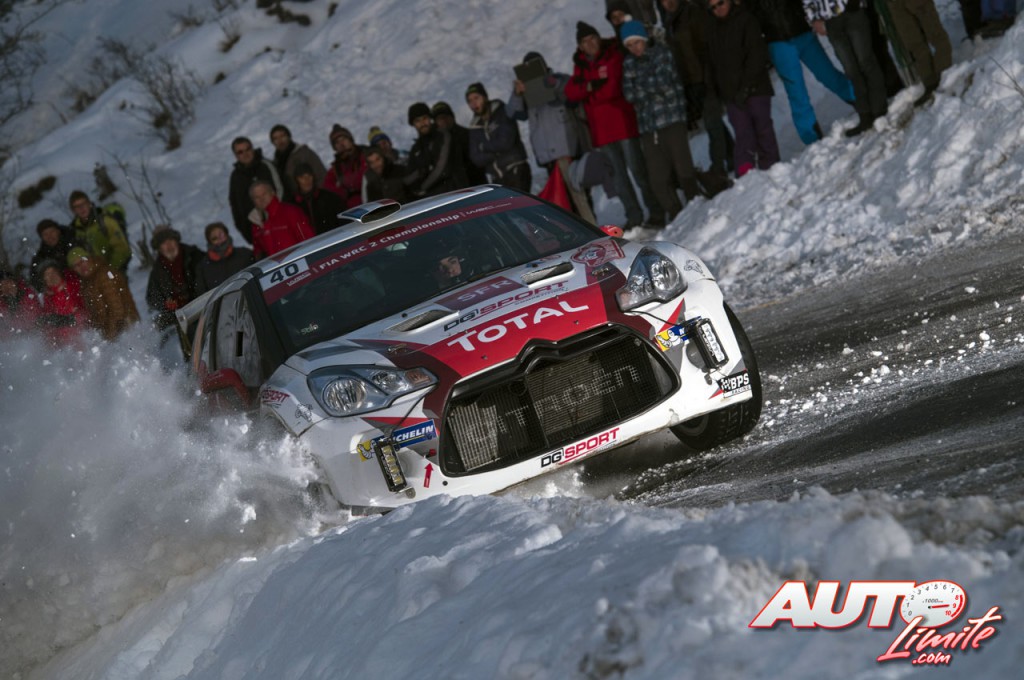 Quentin Gilbert, al volante del Citroën DS3 R5 WRC2, durante el Rallye de Montecarlo 2016, puntuable para el Campeonato del Mundo de Rallyes WRC.