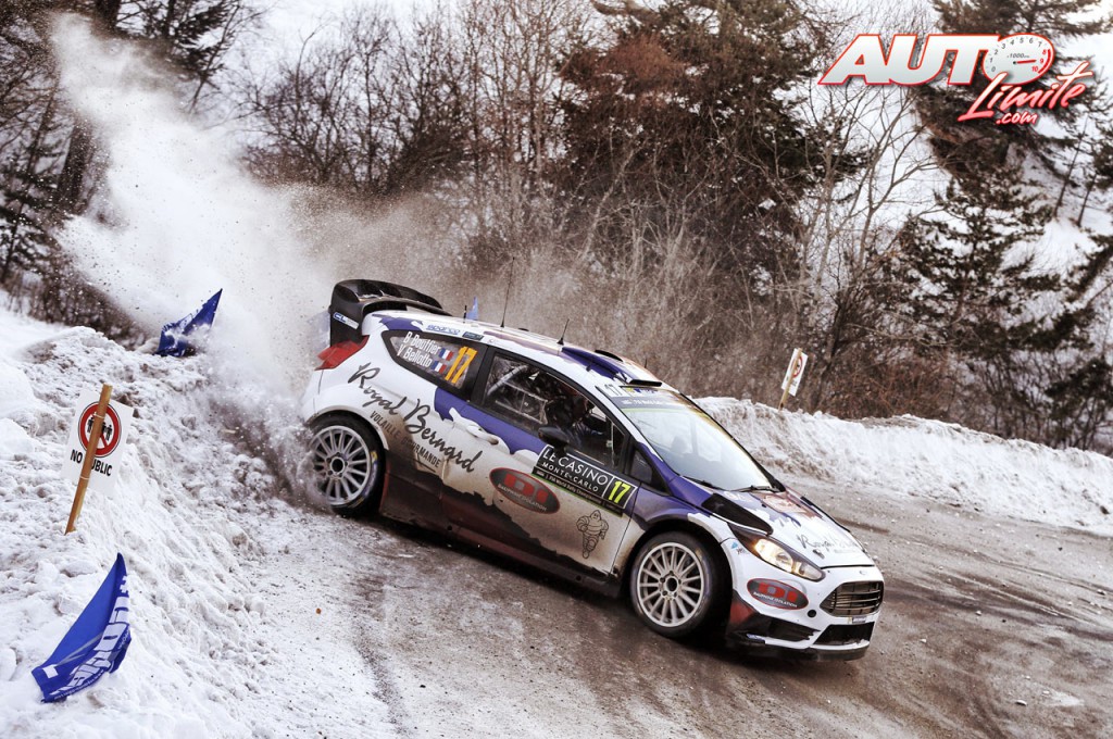 Bryan Bouffier, al volante del Ford Fiesta RS WRC, durante el Rallye de Montecarlo 2016, puntuable para el Campeonato del Mundo de Rallyes WRC.