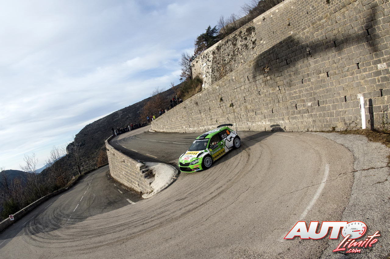 Esapekka Lappi, al volante del Skoda Fabia R5 WRC2, durante el Rallye de Montecarlo 2016, puntuable para el Campeonato del Mundo de Rallyes WRC.