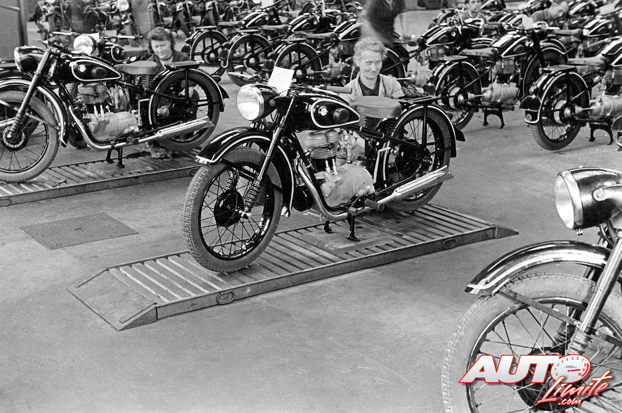 Fabricación de la BMW R 24 (1948), la primera motocicleta de BMW en la postguerra.