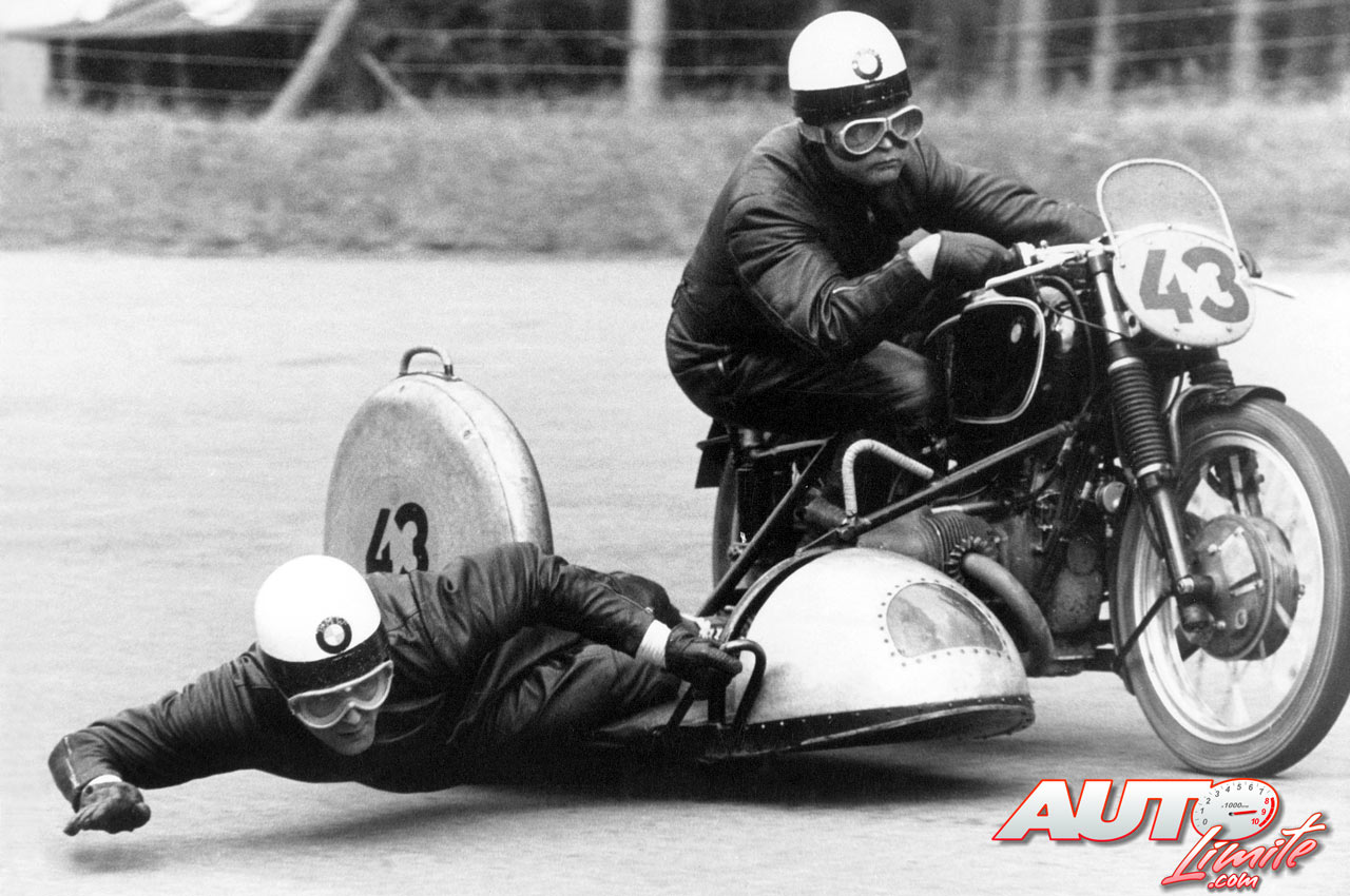 Wilhelm Noll y Fritz Cron compitiendo sobre una BMW Sidecar (1953).