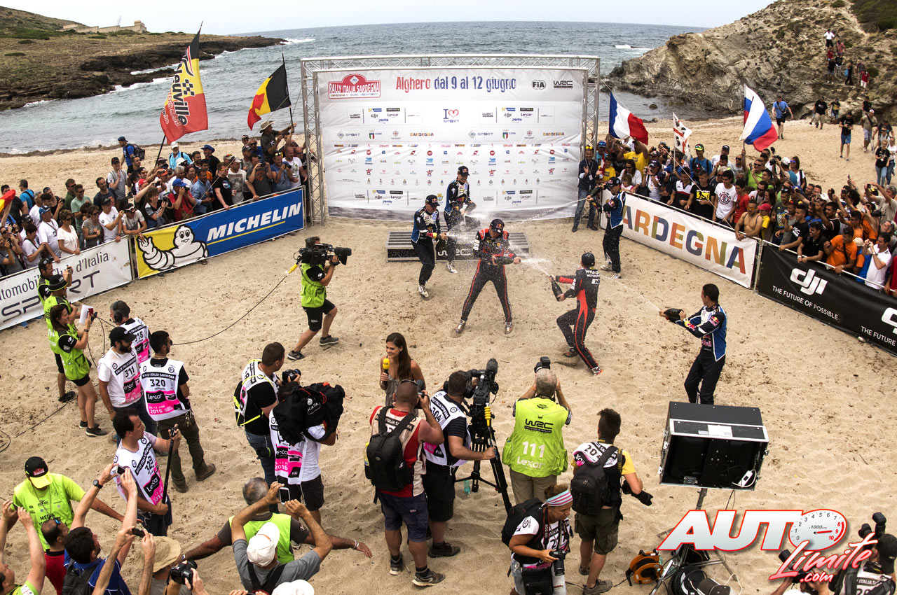 Podio final del Rally de Italia/Cerdeña 2016, puntuable para el Campeonato del Mundo de Rallyes WRC.