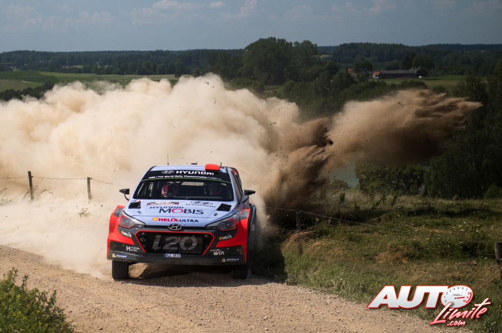 Dani Sordo al volante del Hyundai i20 WRC, durante el Rally de Polonia 2016, puntuable para el Campeonato del Mundo de Rallyes WRC 2016.