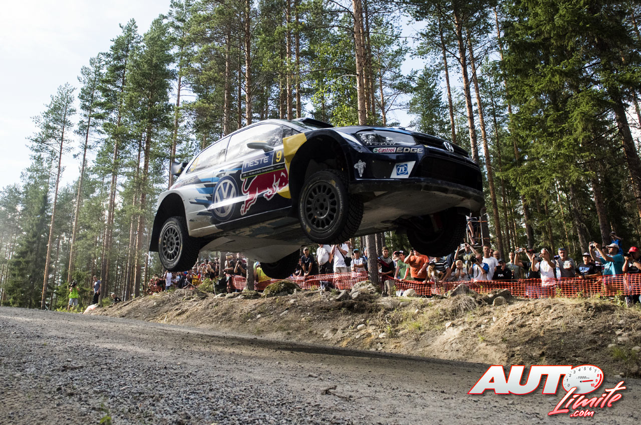 Andreas Mikkelsen al volante del Volkswagen Polo R WRC, durante el Rally de Finlandia 2016, puntuable para el Campeonato del Mundo de Rallyes WRC.