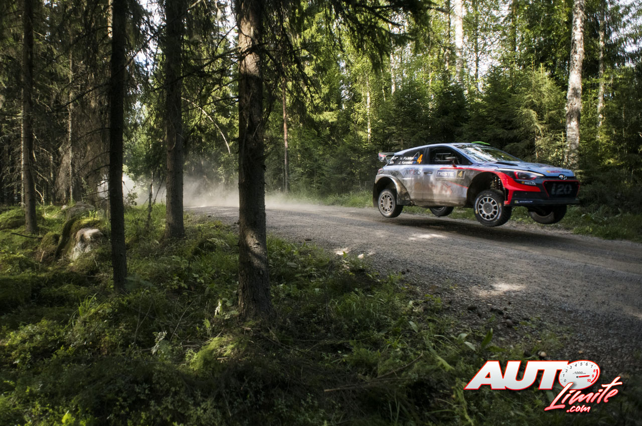 Hayden Paddon al volante del Hyundai i20 WRC, durante el Rally de Finlandia 2016, puntuable para el Campeonato del Mundo de Rallyes WRC.