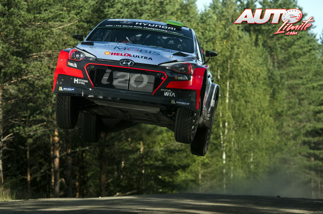 Hayden Paddon al volante del Hyundai i20 WRC, durante el Rally de Finlandia 2016, puntuable para el Campeonato del Mundo de Rallyes WRC.