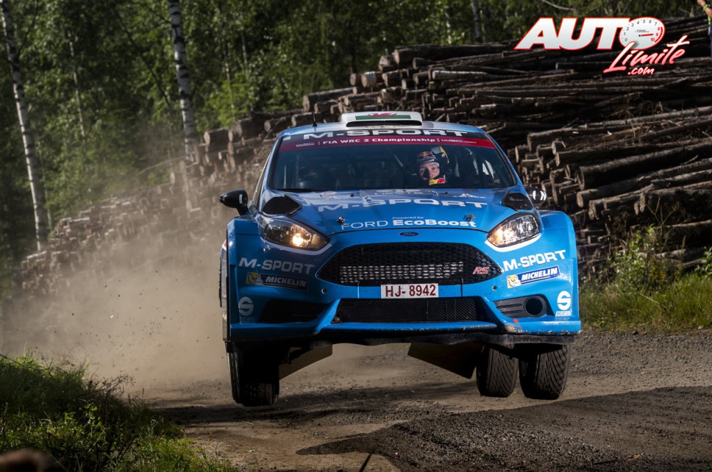 Elfyn Evans al volante del Ford Fiesta R5 WRC2, durante el Rally de Finlandia 2016, puntuable para el Campeonato del Mundo de Rallyes WRC2.