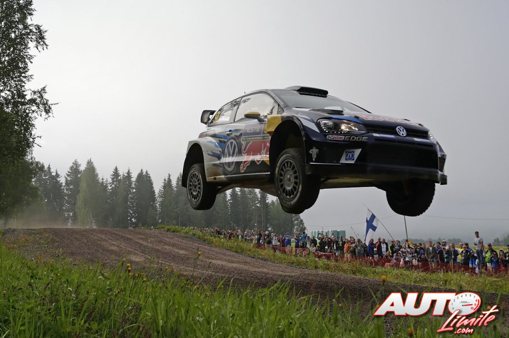 Andreas Mikkelsen al volante del Volkswagen Polo R WRC, durante el Rally de Finlandia 2016, puntuable para el Campeonato del Mundo de Rallyes WRC.