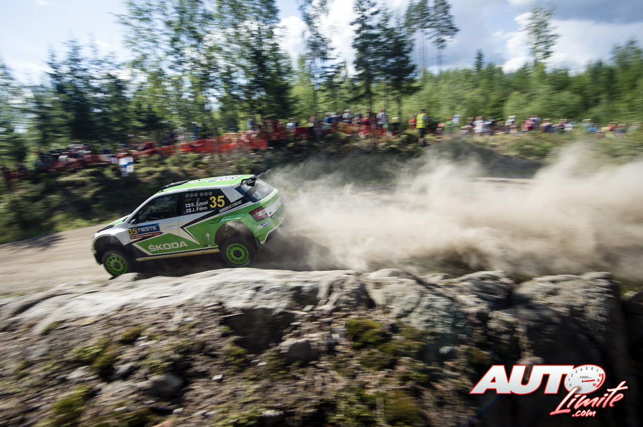 Esapekka Lappi al volante del Skoda Fabia R5 WRC2, durante el Rally de Finlandia 2016, puntuable para el Campeonato del Mundo de Rallyes WRC2.