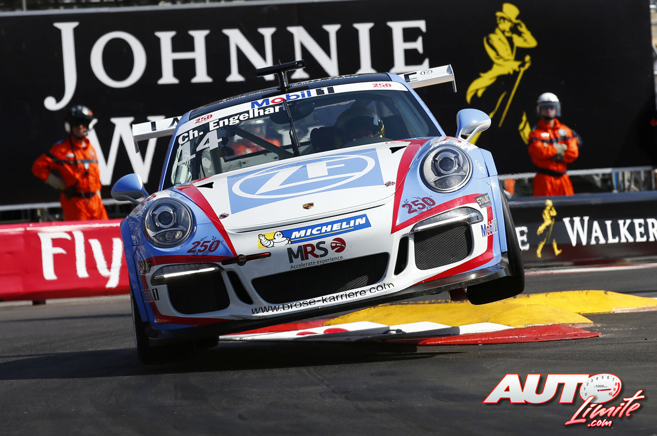 Christian Engelhart, al volante del Porsche 911 GT3 Cup, durante la prueba de la Porsche Supercup 2016 disputada en el circuito urbano de Montecarlo (Mónaco).