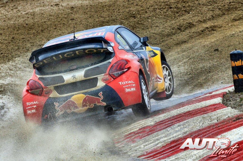 Davy Jeanney, al volante del Peugeot 208 RXC, durante la prueba disputada en Montalegre (Portugal), puntuable para el Campeonato del Mundo de Rallycross 2016.
