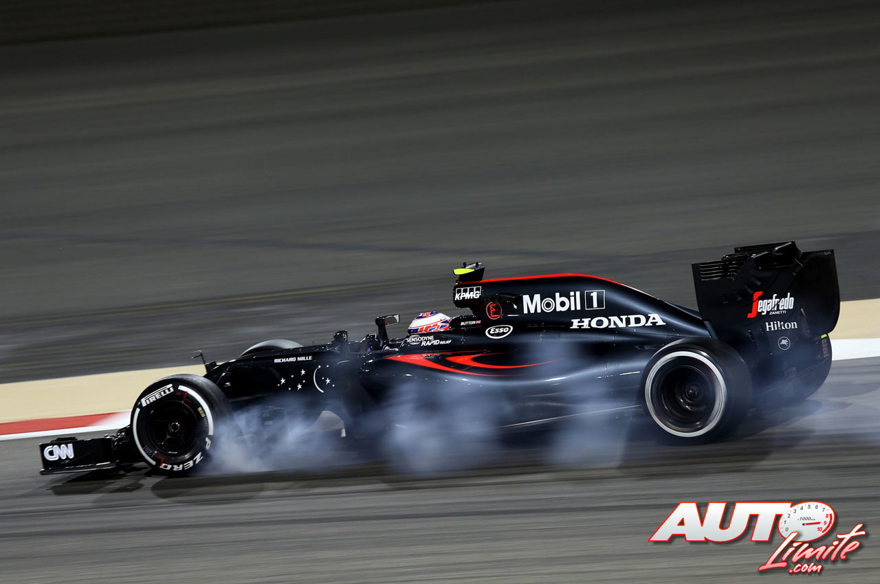 Jenson Button, al volante del McLaren-Honda MP4/31, durante el GP de Bahréin 2016, disputado en el circuito de Sakhir y puntuable para el Campeonato del Mundo de Fórmula 1.