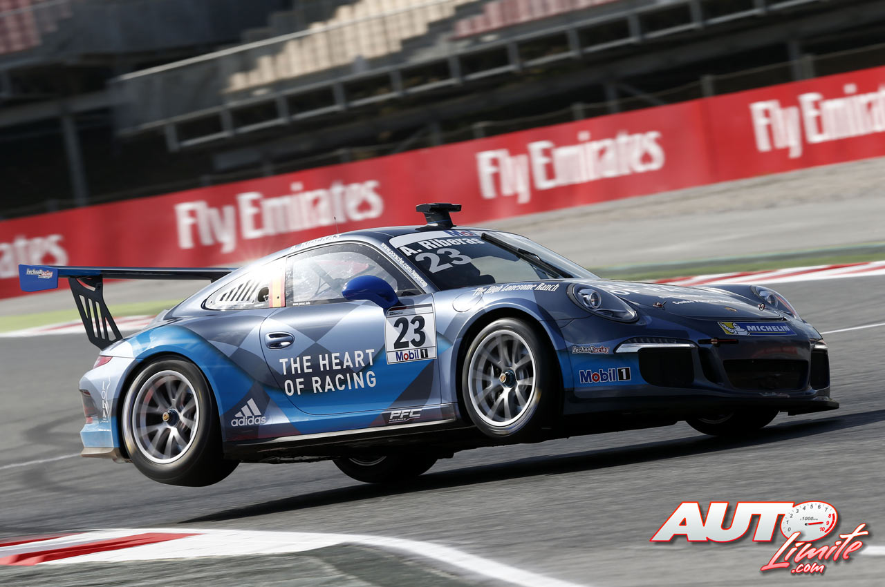 Alex Riberas, al volante del Porsche 911 GT3 Cup, durante los entrenamientos de la Porsche Supercup 2015, disputados en el circuito de Montmeló (España).