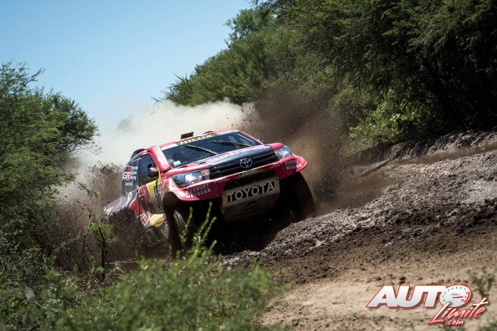 Nasser Al-Attiyah, al volante del Toyota Hilux V8 4x4, durante la 2ª etapa del Rally Dakar 2017, disputada entre Resistencia y San Miguel de Tucumán (Argentina).