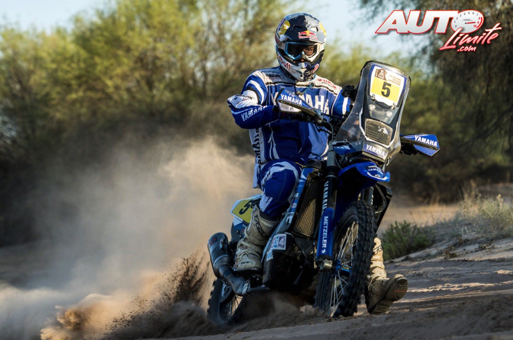 Helder Rodrigues, a los mandos de la Yamaha WR450F, durante la 11ª etapa del Rally Dakar 2017, disputada entre San Juan y Río Cuarto (Argentina).