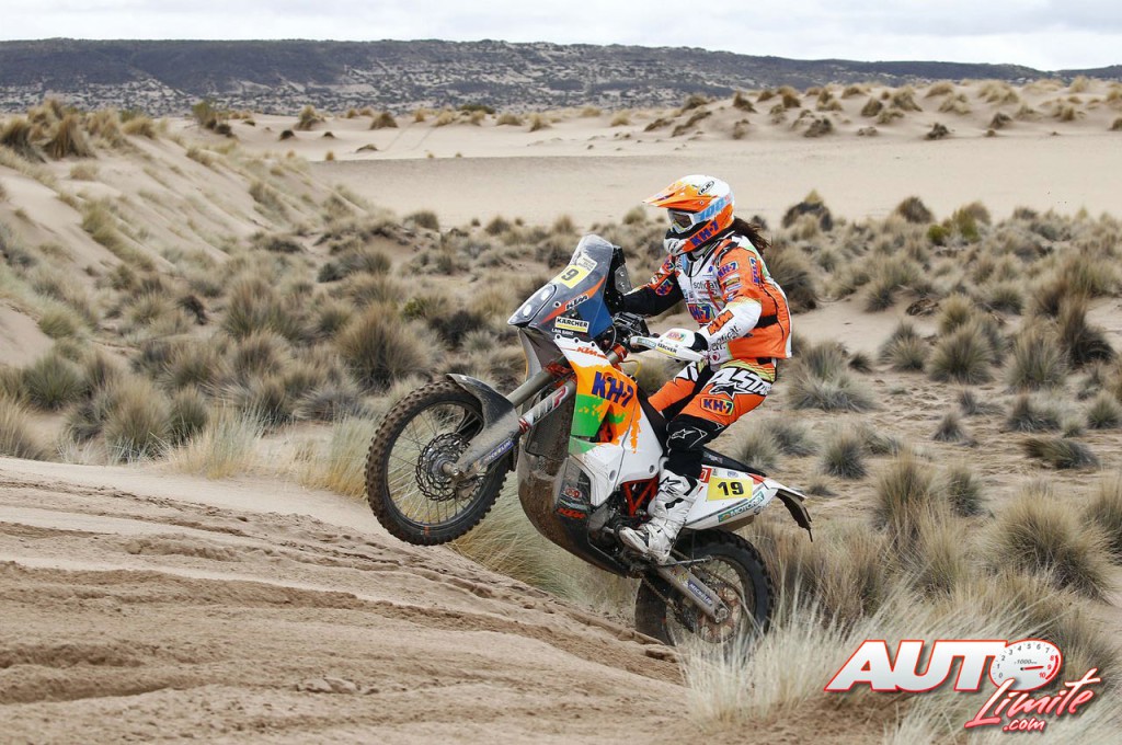 Laia Sanz, a los mandos de la KTM 450 Rally Replica, durante la 8ª etapa del Rally Dakar 2017, disputada entre Uyuni (Bolivia) y Salta (Argentina).