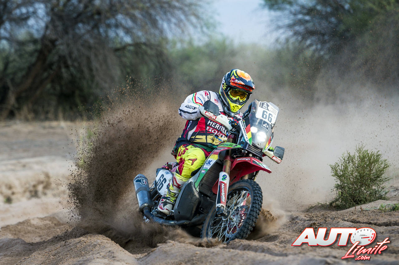 Walter Nosiglia, a los mandos de la Honda CRF450 X Rally, durante la 11ª etapa del Rally Dakar 2017, disputada entre San Juan y Río Cuarto (Argentina).