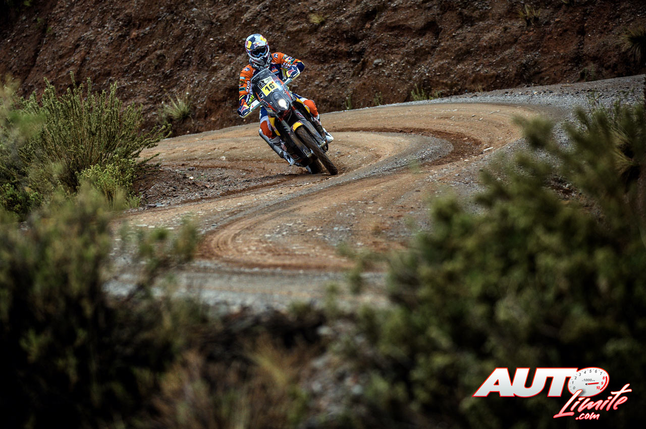 Matthias Walkner, a los mandos de la KTM 450 Rally Replica, durante la 5ª etapa del Rally Dakar 2017, disputada entre Tupiza y Oruro (Bolivia).
