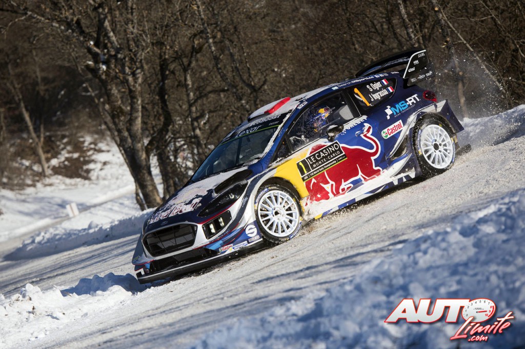 Sébastien Ogier, al volante del Ford Fiesta WRC, durante el Rallye de Montecarlo 2017, puntuable para el Campeonato del Mundo de Rallyes WRC.