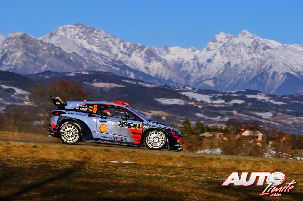 Dani Sordo, al volante del Hyundai i20 Coupé WRC, durante el Rallye de Montecarlo 2017, puntuable para el Campeonato del Mundo de Rallyes WRC.