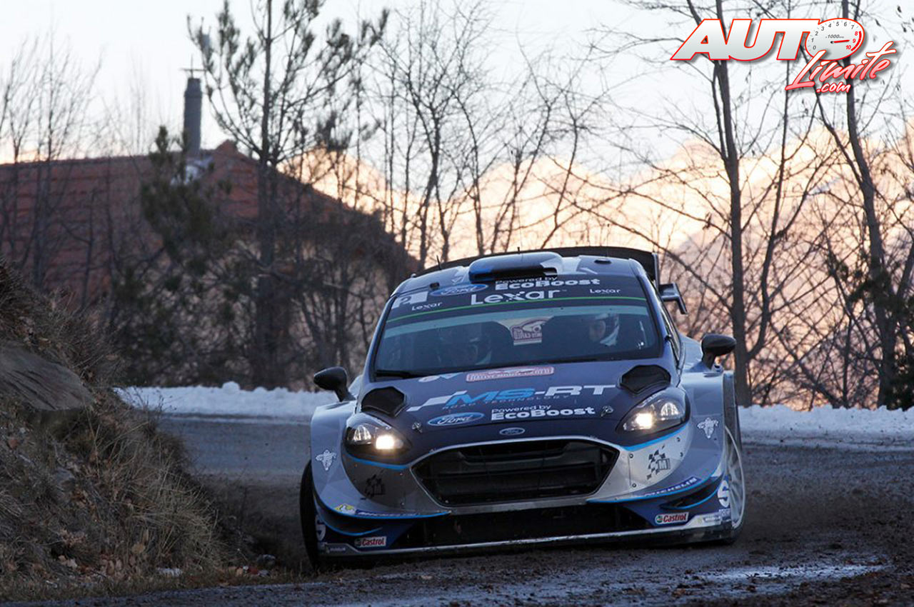 Ott Tänak, al volante del Ford Fiesta WRC, durante el Rallye de Montecarlo 2017, puntuable para el Campeonato del Mundo de Rallyes WRC.