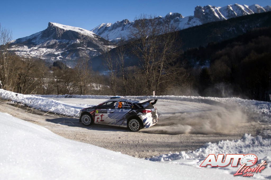 Kevin Abbring, al volante del Hyundai i20 R5 WRC2, durante el Rallye de Montecarlo 2017, puntuable para el Campeonato del Mundo de Rallyes WRC2.