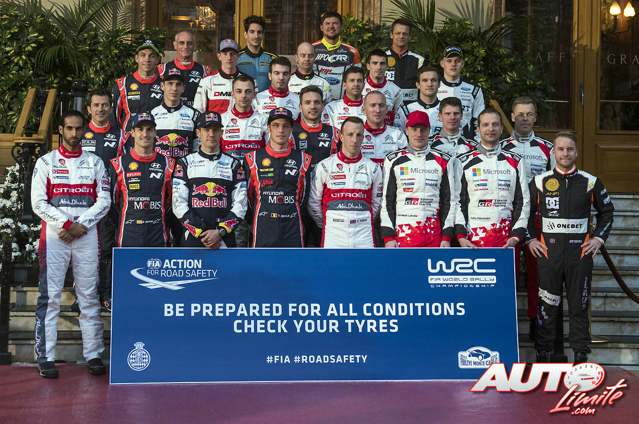 Foto de grupo con los pilotos y los copilotos de la categoría WRC durante el Rally de Montecarlo 2017.