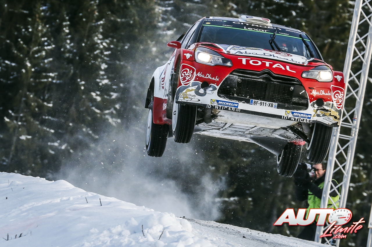 Stéphane Lefebvre, al volante del Citroën DS3 WRC, durante el Rallye de Suecia 2017, puntuable para el Campeonato del Mundo de Rallyes WRC.