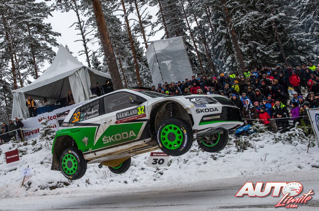 Pontus Tidemand, al volante del Skoda Fabia R5 WRC2, durante el Rallye de Suecia 2017, puntuable para el Campeonato del Mundo de Rallyes WRC2.